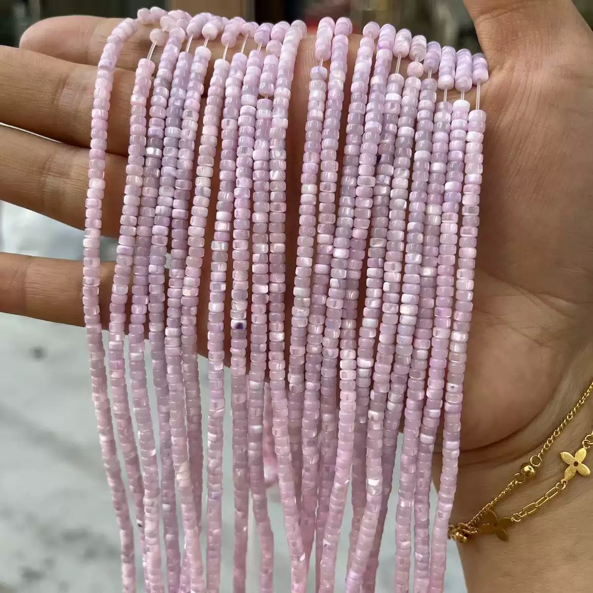 Hogar » Productos » Cabujón » Collar colorido de nácar Natural para mujer, joyería, fabricación de pulseras, diseño de cadena de concha de frijoles pequeños, forma redonda