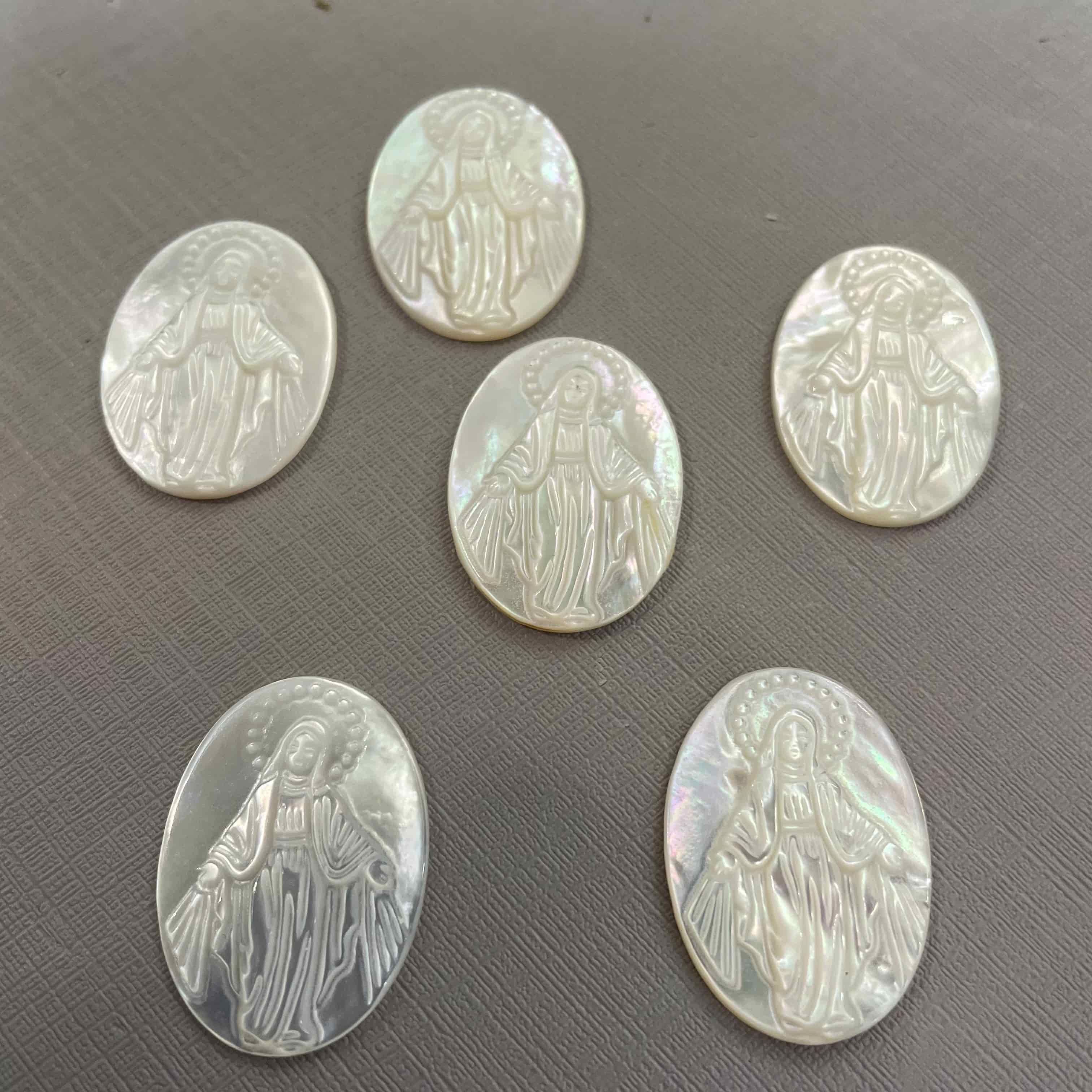 Hogar » Productos » Cabujón » Collar con diseño de maría, forma ovalada de nácar Natural, fabricación de colgantes, iconos de gran tamaño, corte de cabujón en relieve