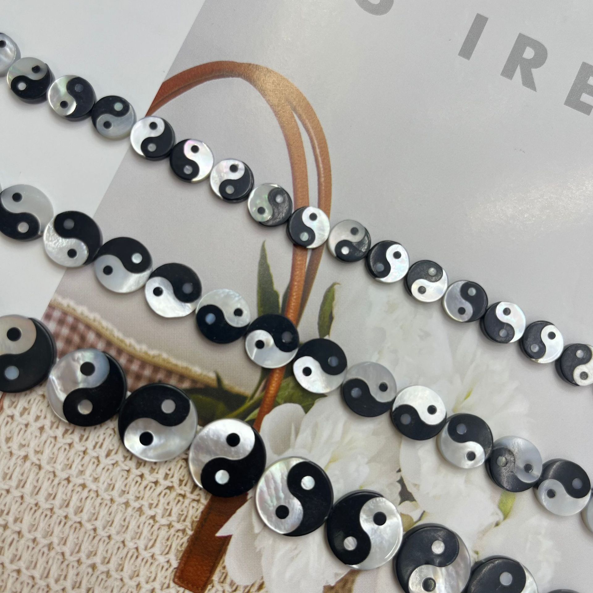 Hogar » Productos » Cabujón » Diagrama de forma redonda de nácar natural del diseño del collar del universo para la fabricación de joyas, concha blanca, piedra negra, frijoles pequeños