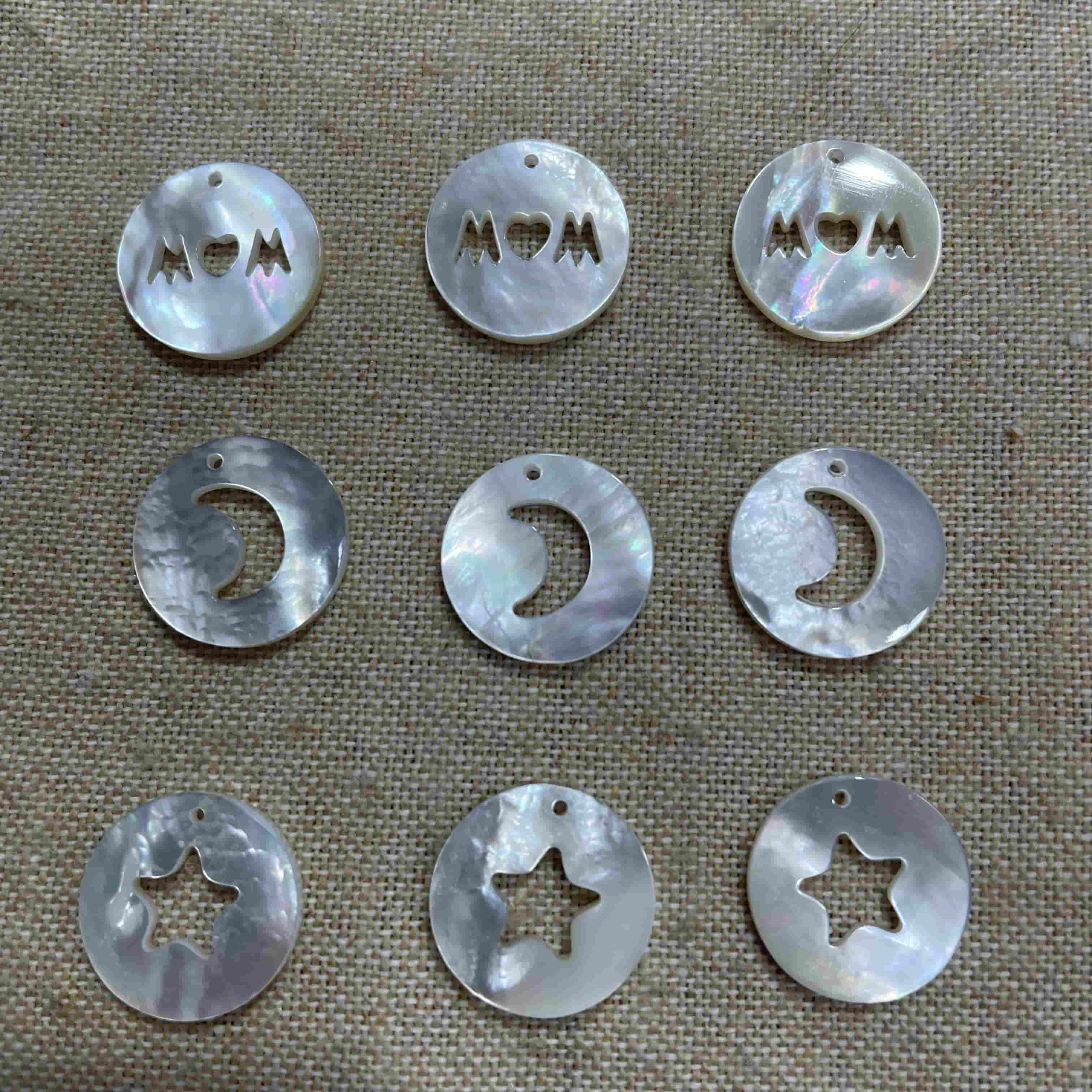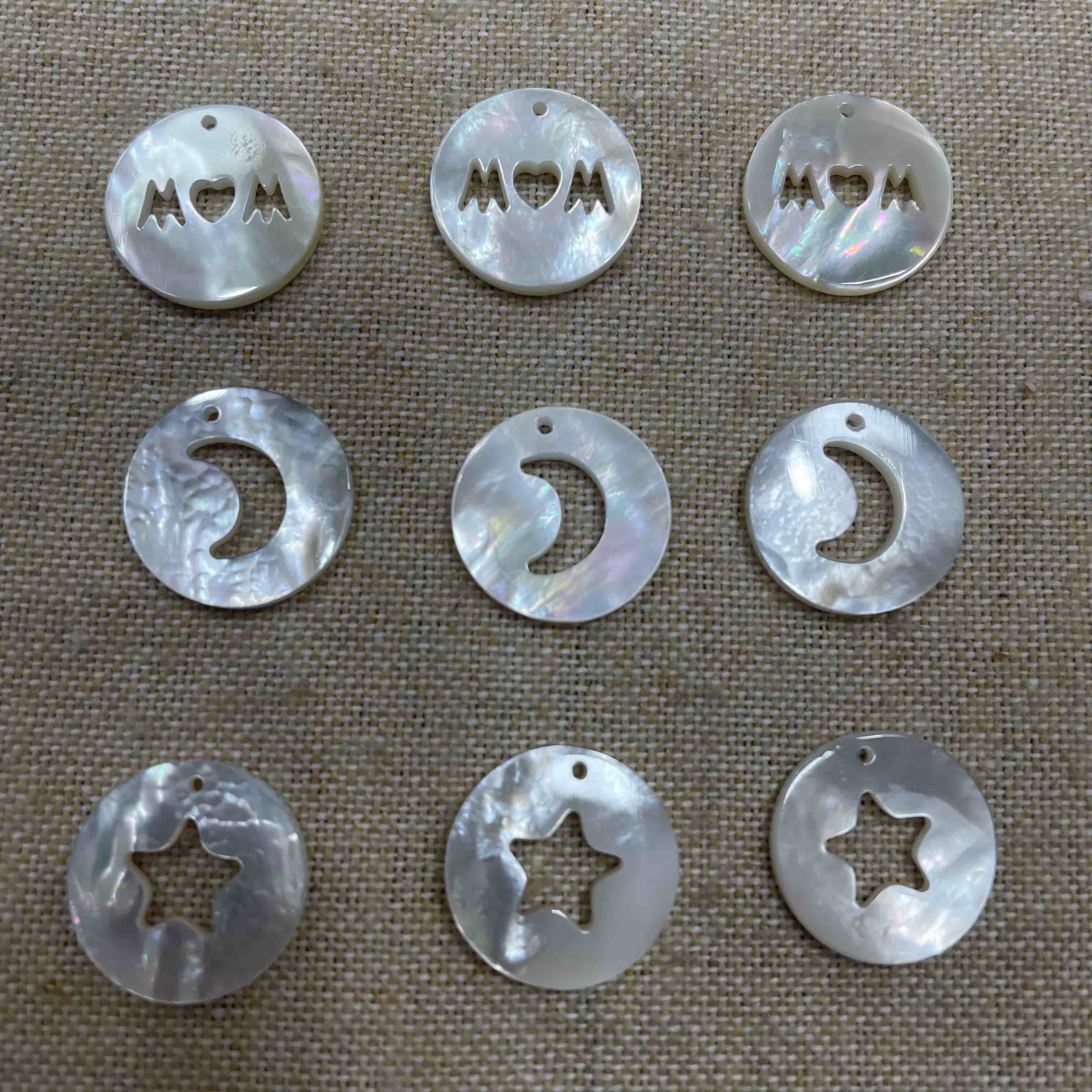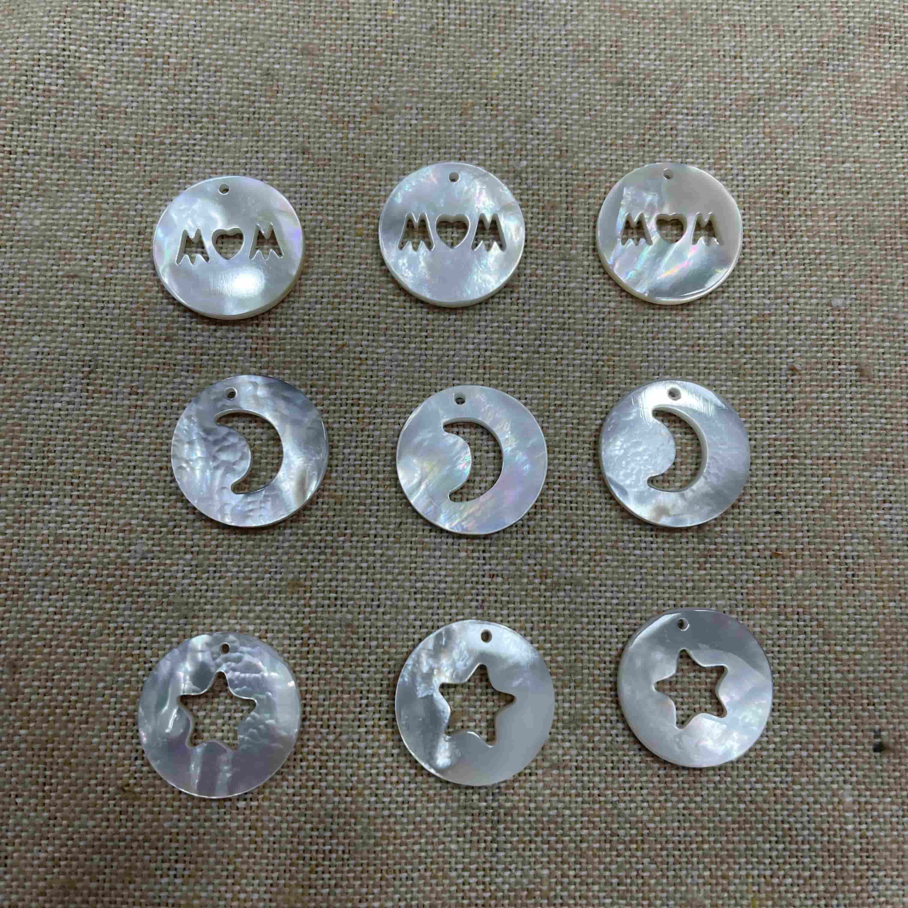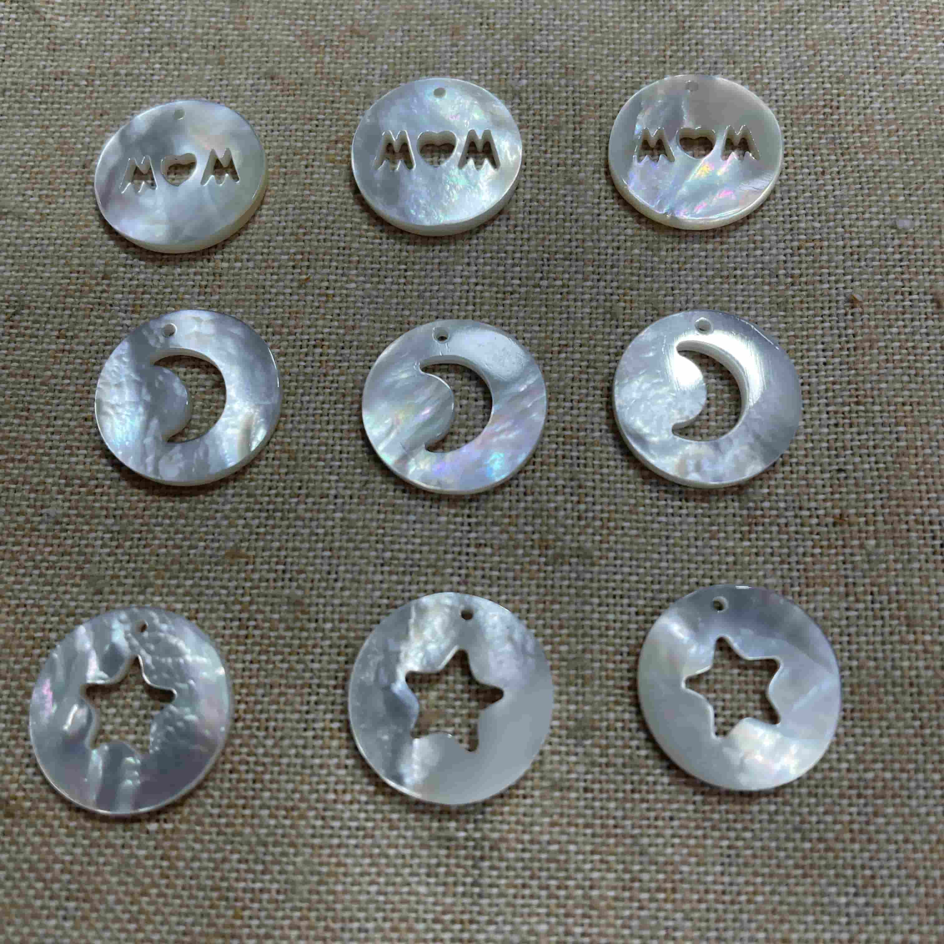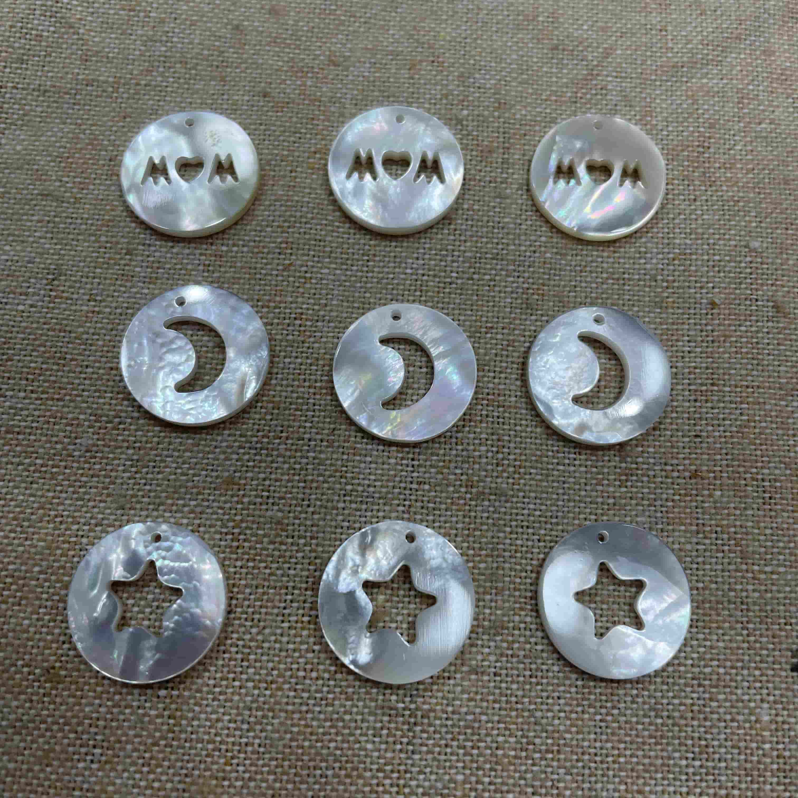 Hogar » Productos » Corte hueco » Diseño colgante de nácar Natural, forma redonda, estrella de corte, colgante de corazón, concha blanca, diseño de incrustaciones de joyería, fabricación lisa