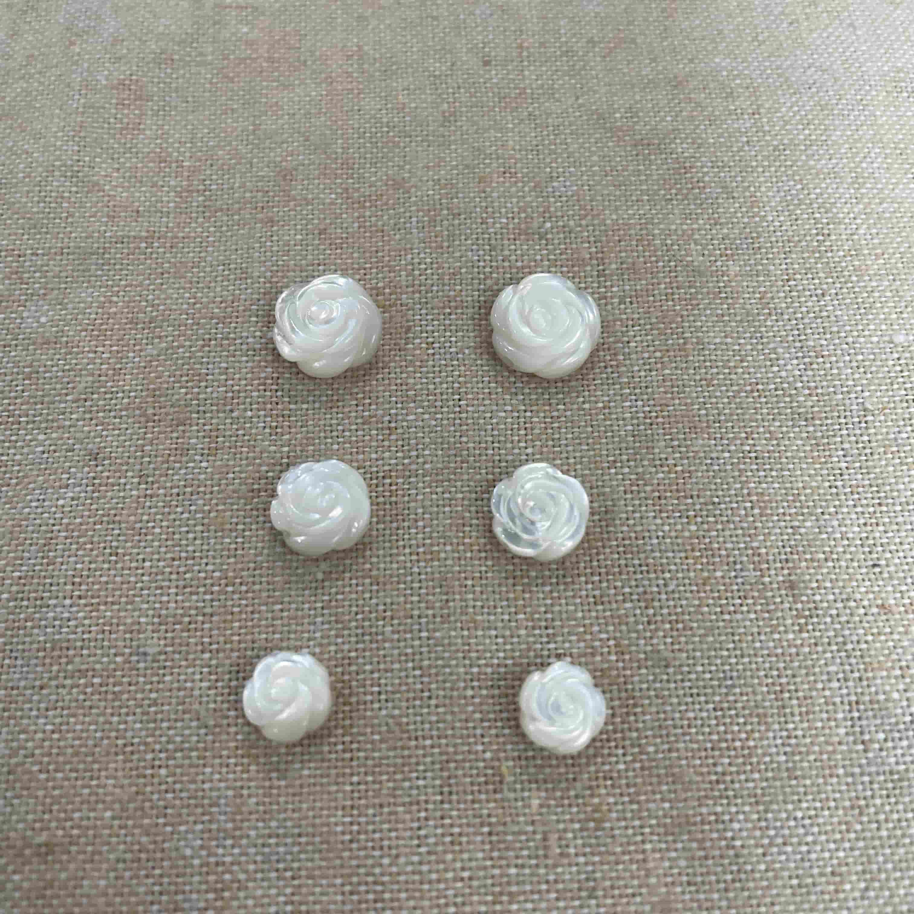 Hogar » Productos » Flor tallada » Forma natural de la madre de la perla Corte de la cadena de caparazón blanco de rosa que hace dos flores de la cara para joyas de diseño de pulseras
