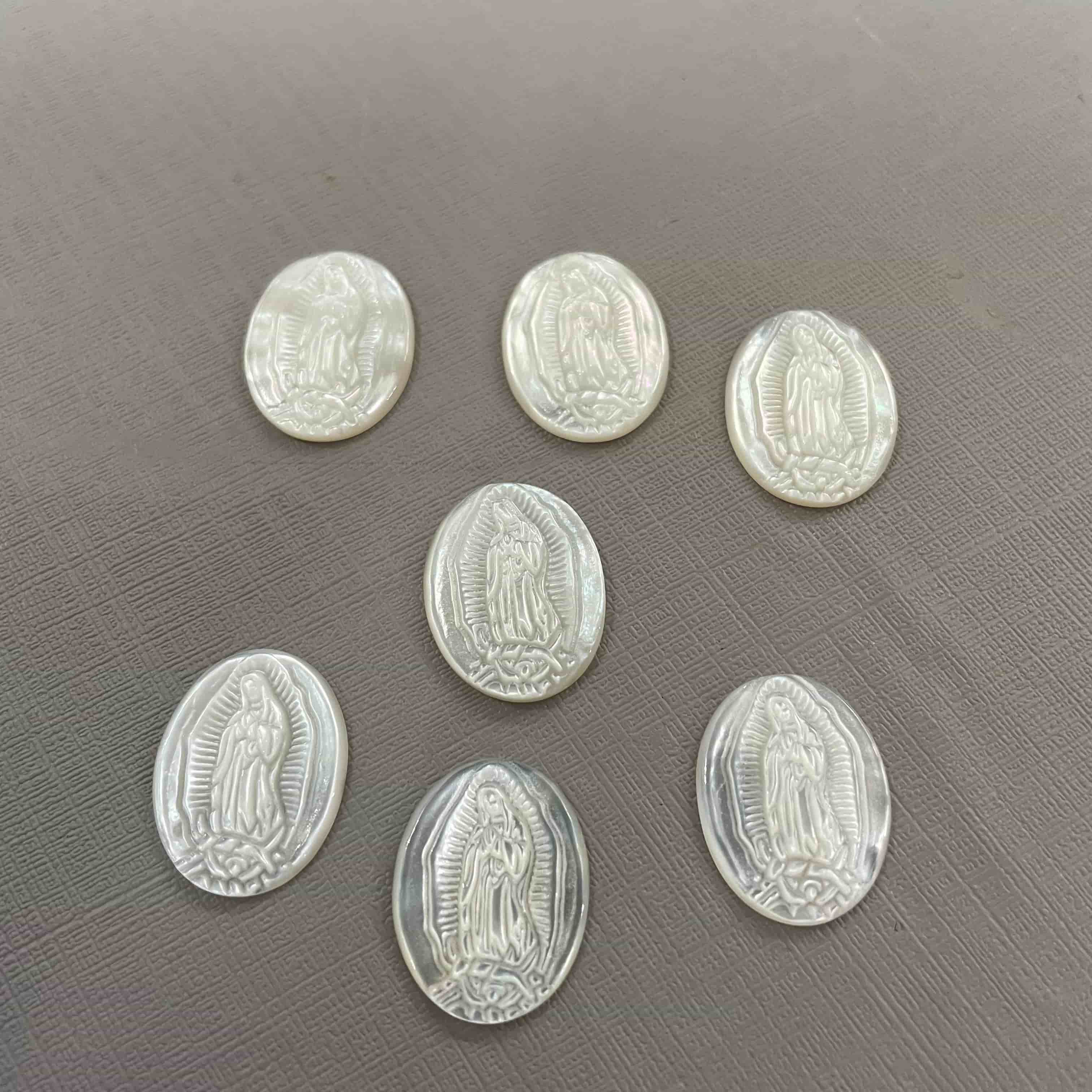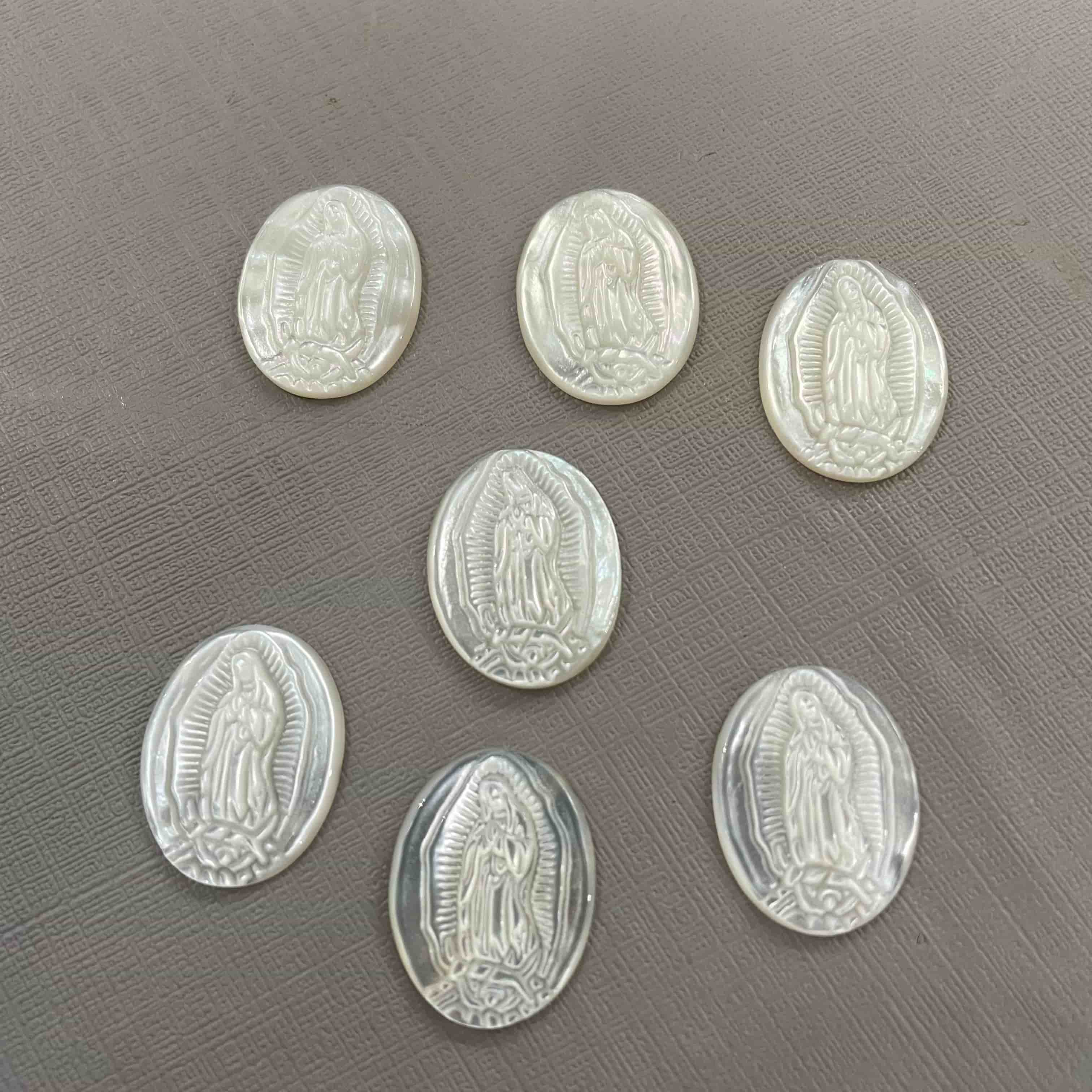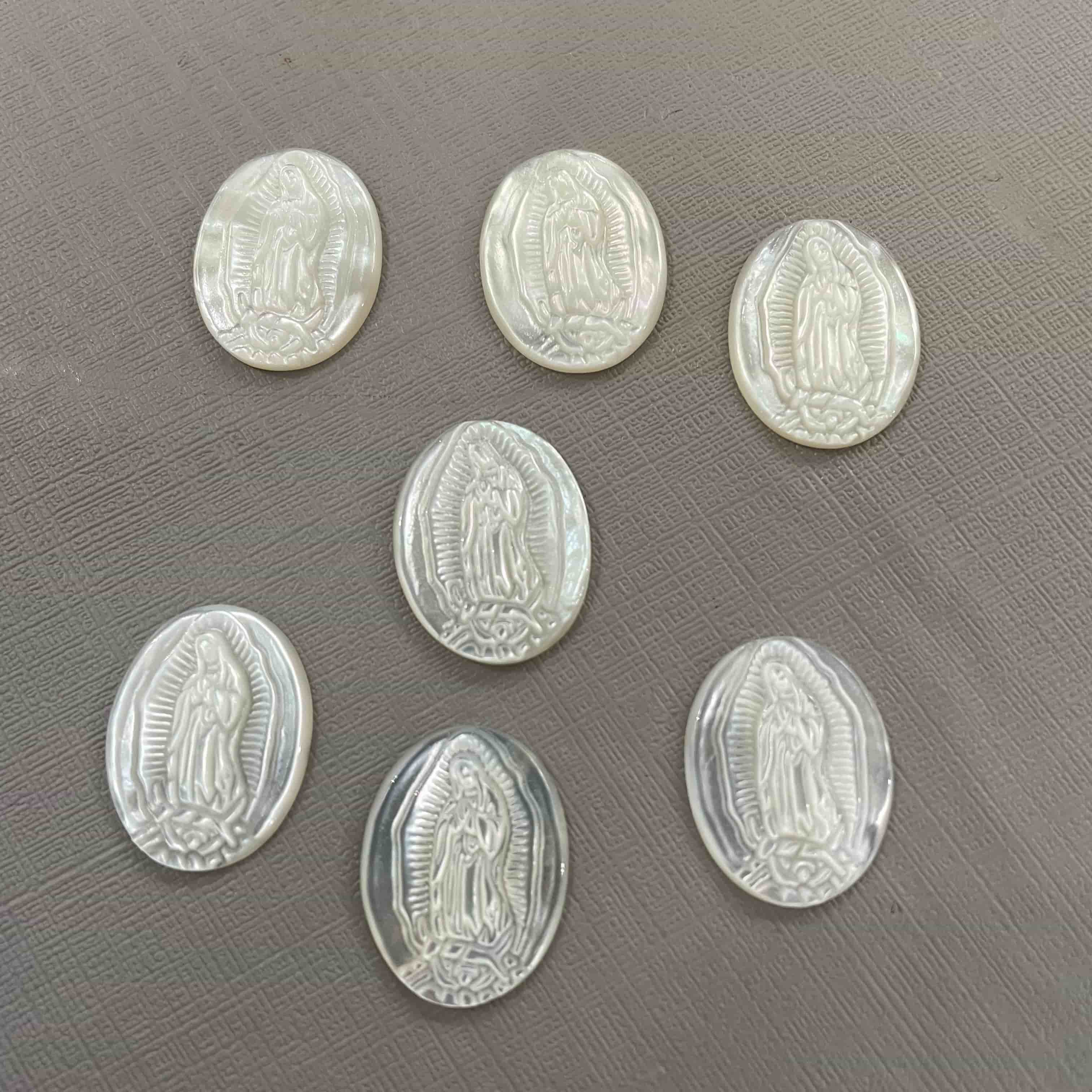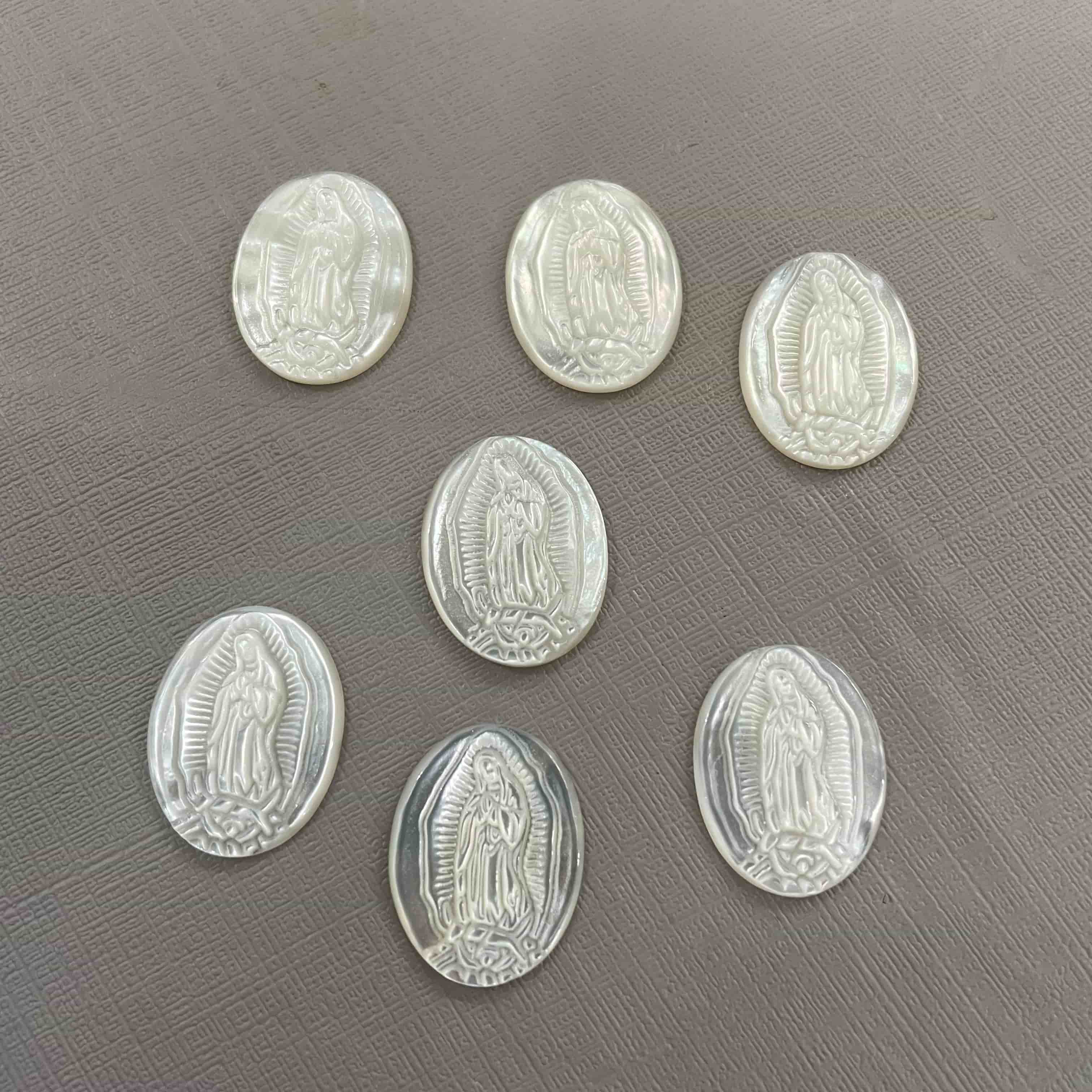 Hogar » Productos » Cabujón » Imagen de Guadalupe de nácar Natural, colgante de forma ovalada cortada, iconos con incrustaciones de Jesús, fabricación de joyas, diseño de concha blanca María