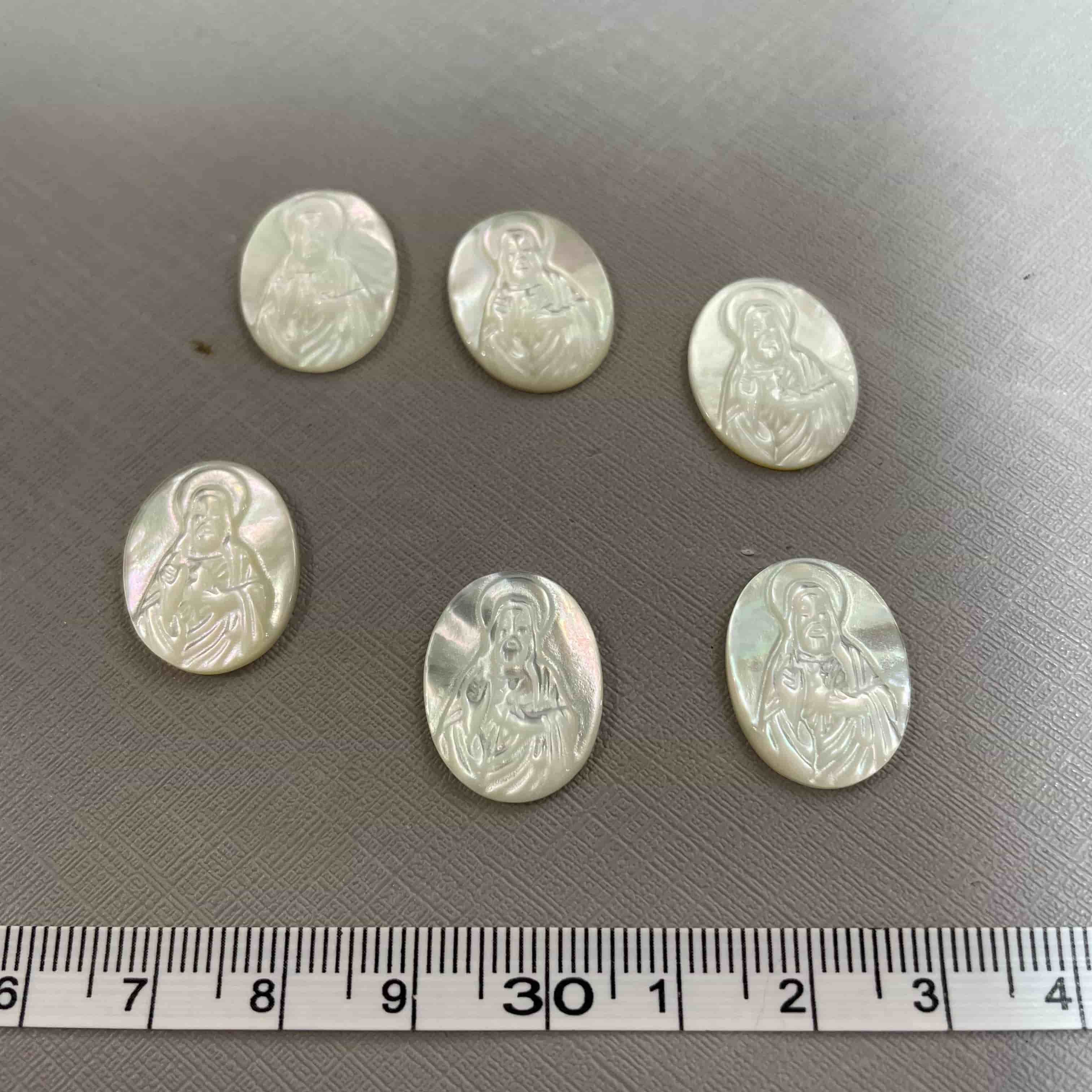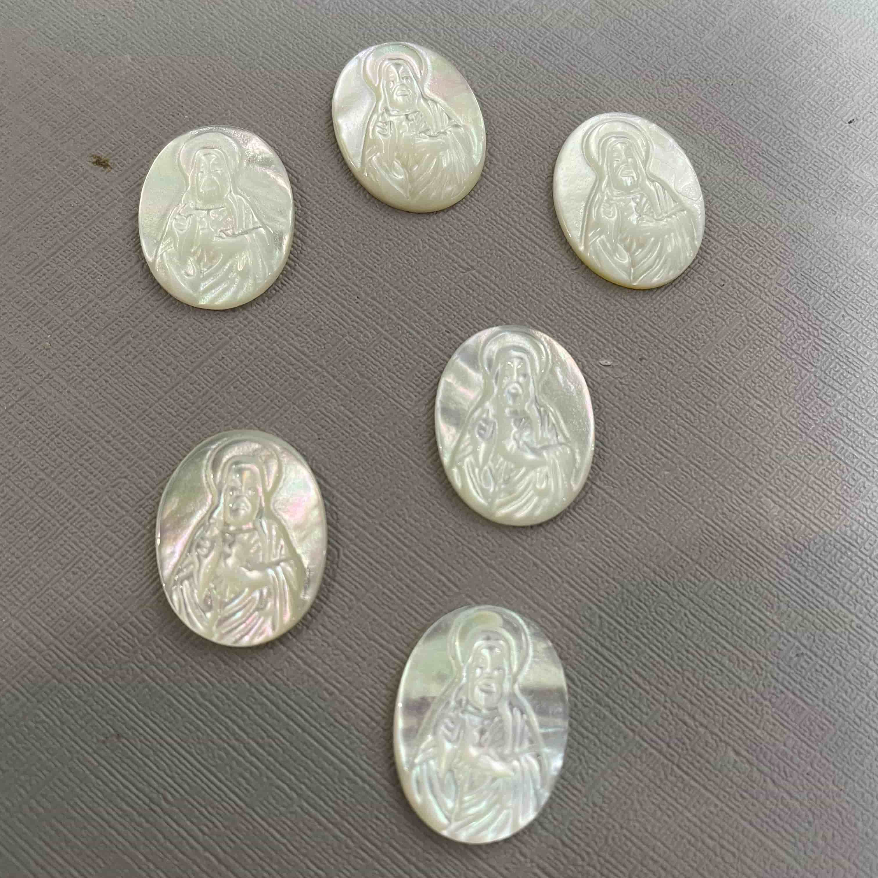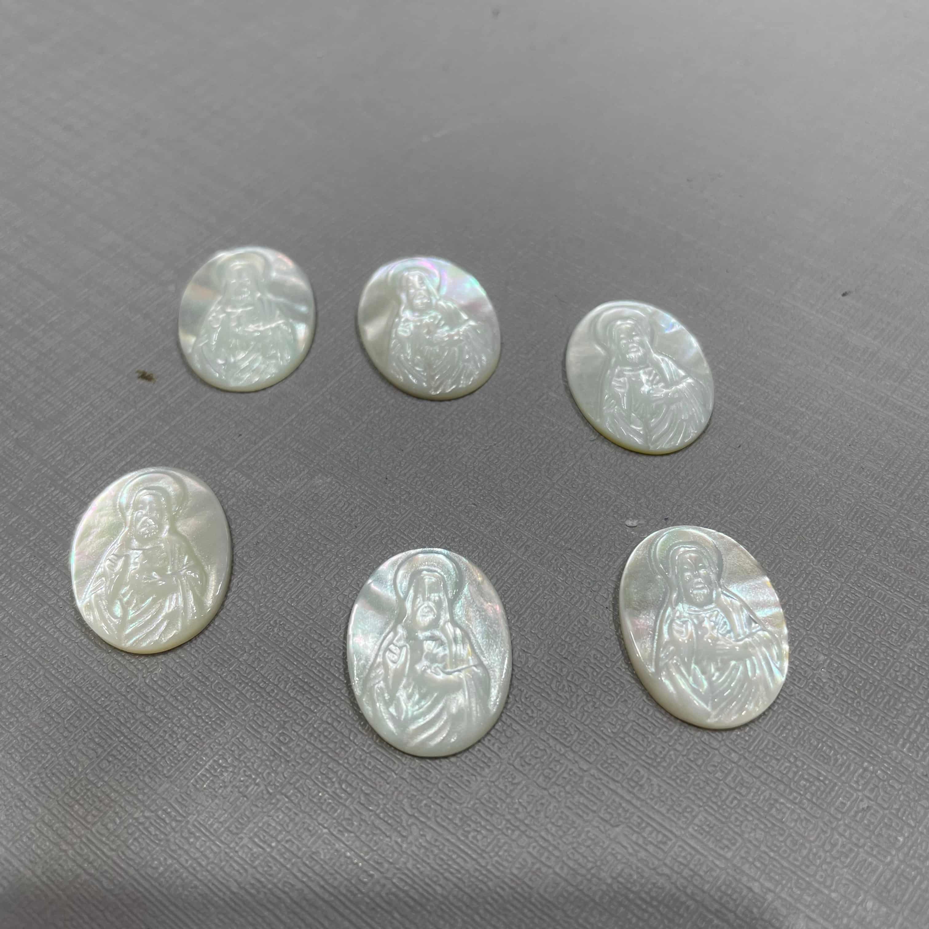 Hogar » Productos » Cabujón » Imagen de Jesús de nácar Natural, corte de forma ovalada, concha blanca, iconos de forma ovalada, tallado de carmo, diseño de colgante, fabricación de collar