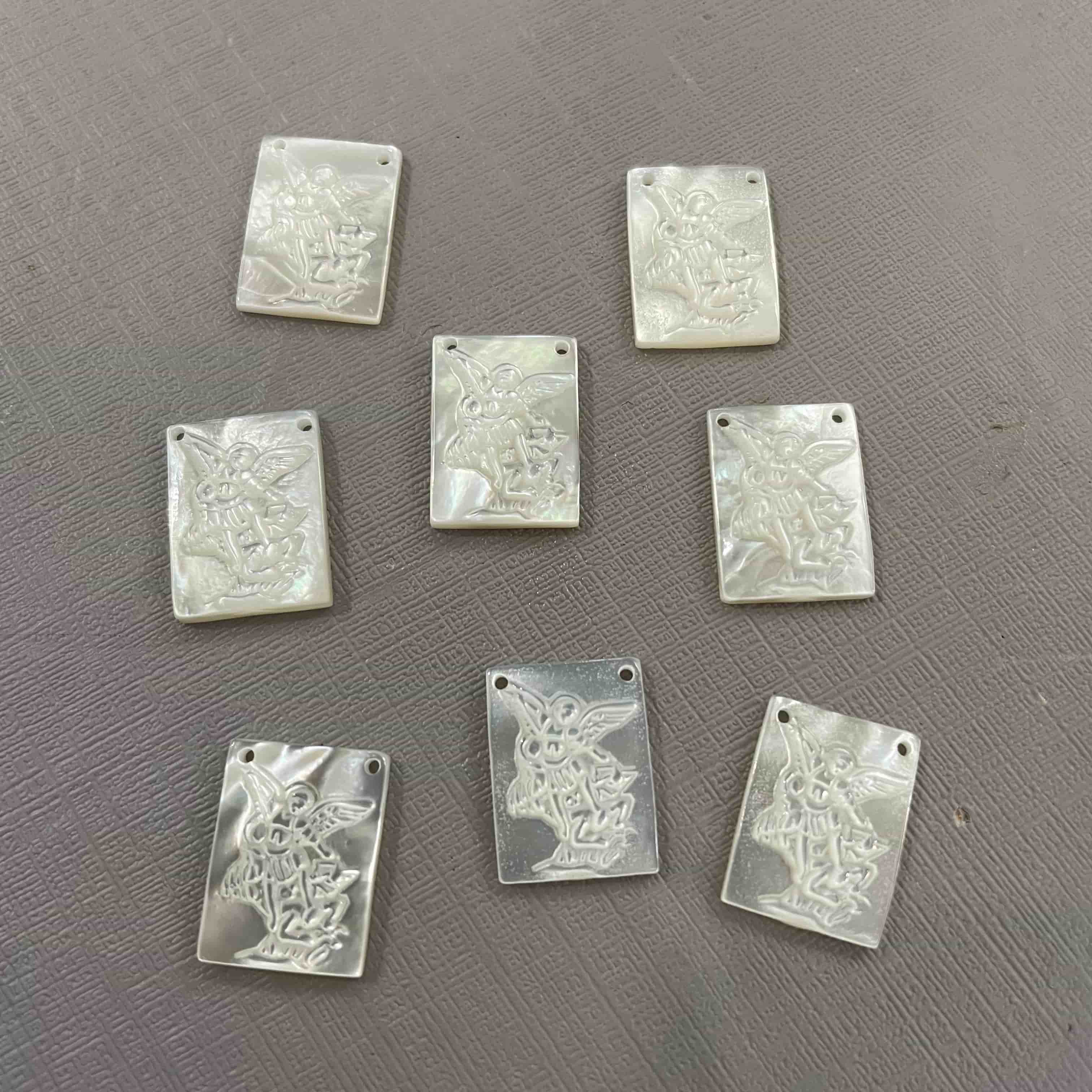 Hogar » Productos » Cabujón » Imagen tallada en ángulo de nácar Natural, diseño colgante, iconos cuadrados de bebé para piezas de collar, fabricación de concha blanca