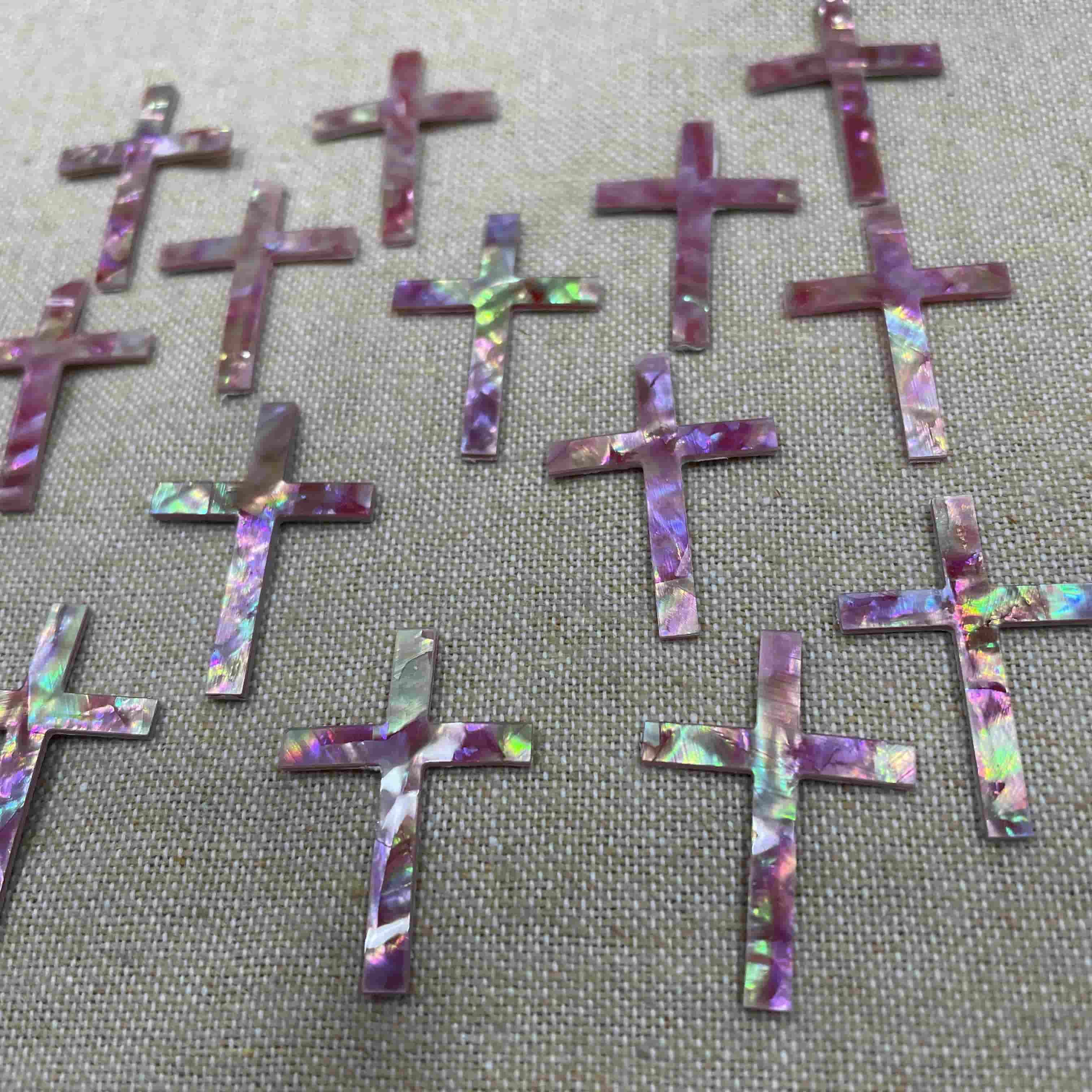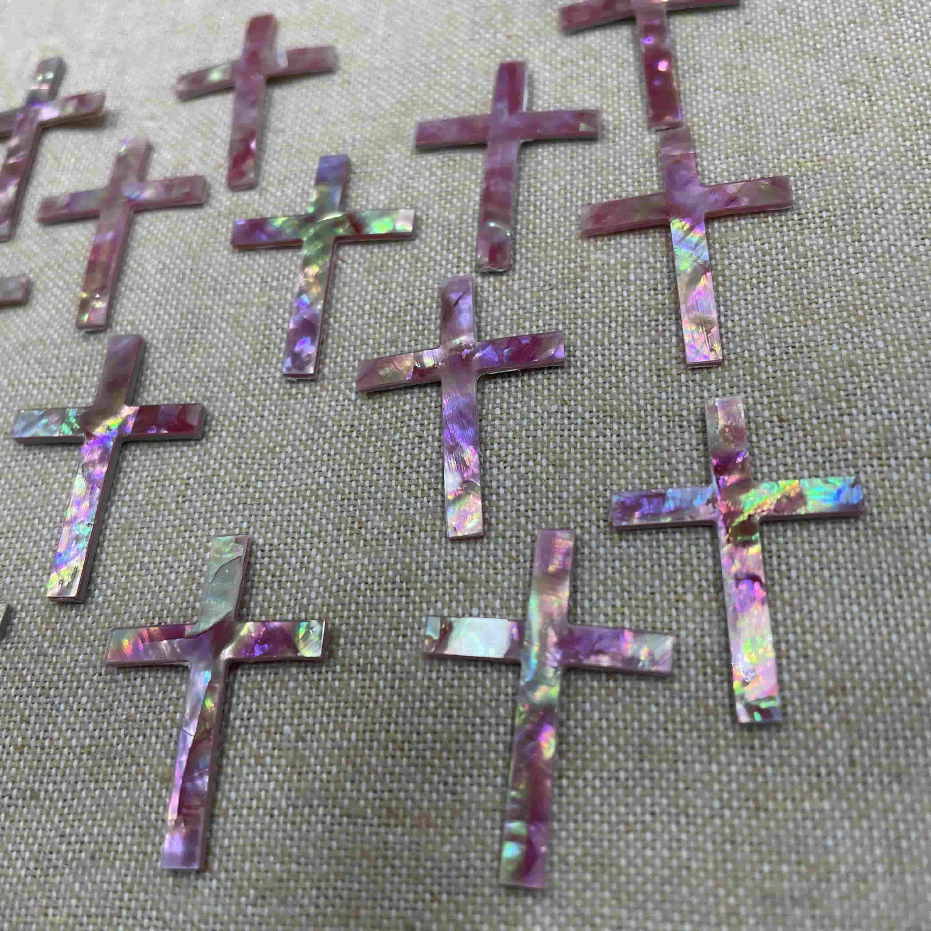 Hogar » Productos » Forma simple » Madre de perla Pearl Pink Cross Cutting Diseño de colgante cruzado para joyas Estilo de incrustación de carcasa rosa Tallado de cara lisa