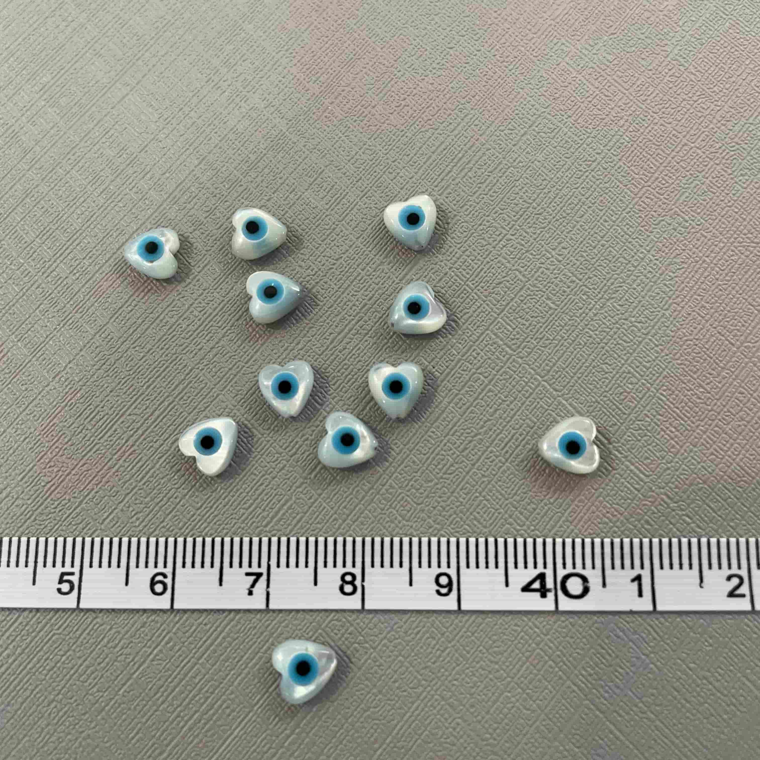Hogar » Productos » Cabujón » Nácar Natural forma de corazón ojos malvados cosas pequeñas para hacer collares joyería DIY cadena pequeñas cuentas forma de corte de corazón